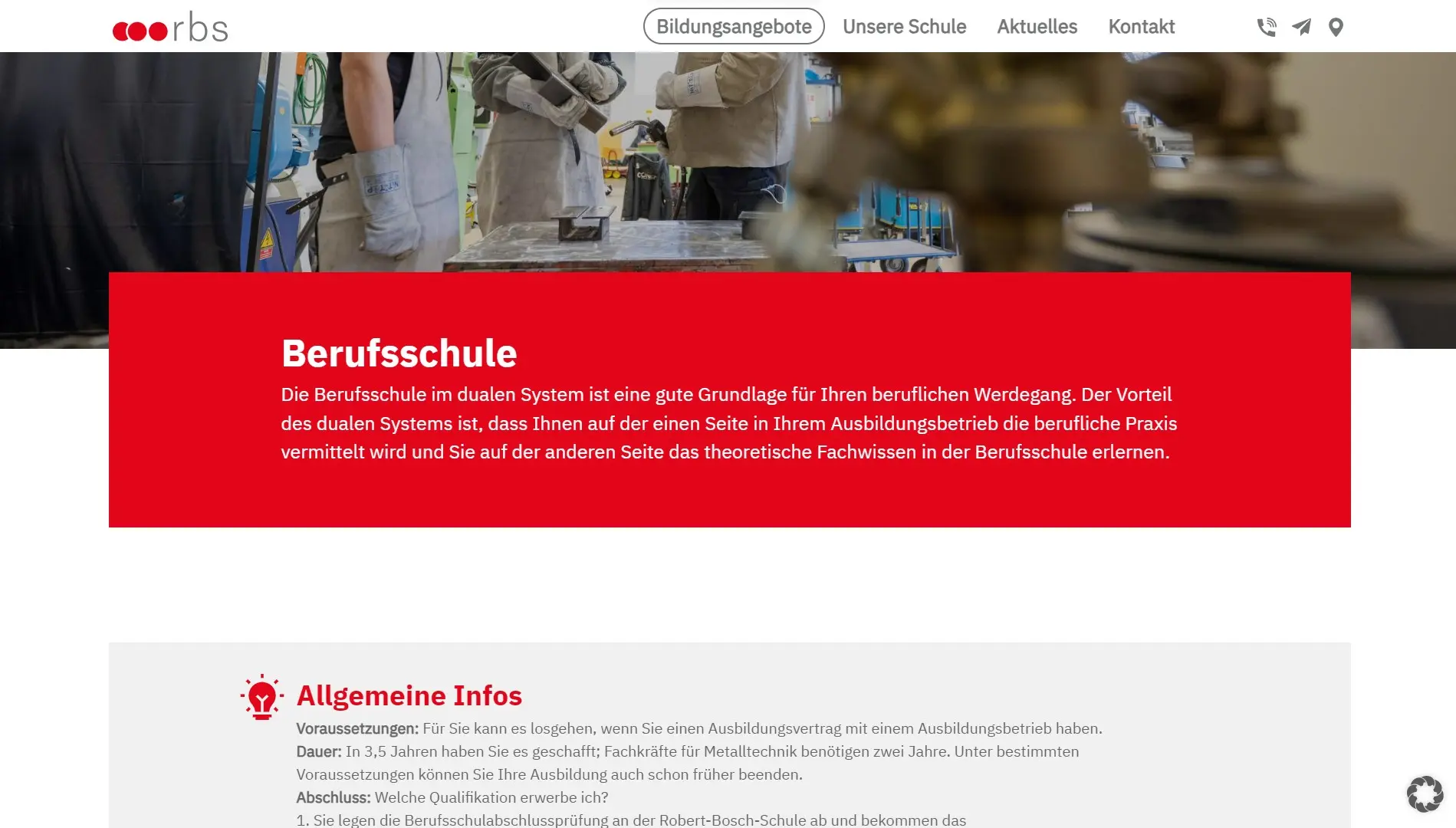 Ein Ausschnitt der Berufsschule Seite von rbs-stuttgart.de